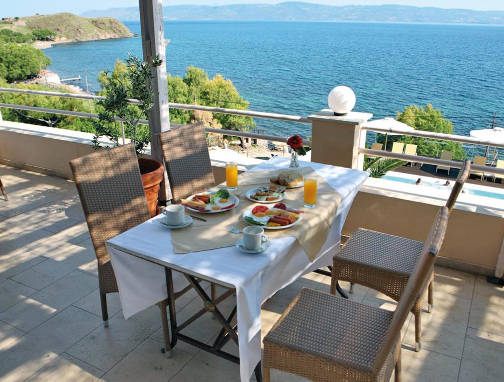 Nabij het gezellige Molyvos, Direct aan een strand, Comfortable kamers, Verblijf All Inclusive, Diverse zwembaden voor een duik, Geniet van een prima maaltijd & inclusief transfers.