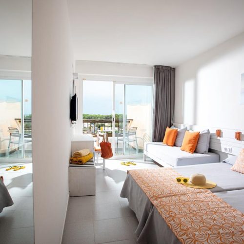 All Inclusive, onbezorgd genieten, Smullen van een wereldbuffet, Zo op het strand van Es Canar, Fit en fun voor jong en oud, Het personeel staat voor je klaar, Basic, modern hotel & inclusief transfers.
