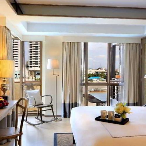BBQ met Thaise twist, Ontbijt met rivieruitzicht, Boottaxi als stadsvervoer, Droomlocatie voor stadshoppers, Zwemmen tussen stadspanorama's, Stijlvolle kamers, warme sfeer & inclusief transfers.